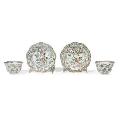 Four Chinese Export porcelain famille verte fluted tea bowls & saucers kangxi period