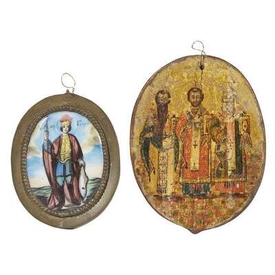 Two Russian oval miniature portraits of saints 19th century