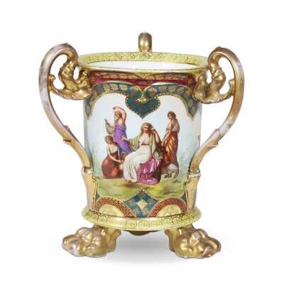 A Royal Vienna style hand-painted and parcel-gilt porcelain cache pot Late 19th/early 20th century