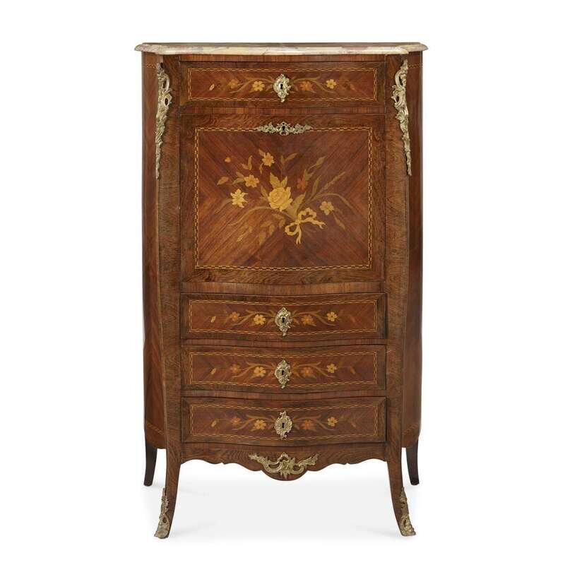 A Louis XV/XVI transitional style parquetry kingwood and acajou secrétaire à abattant late 19th century/ early 20th century