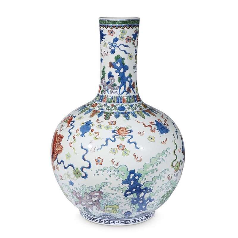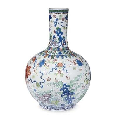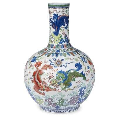 A Chinese wucai-decorated porcelain large vase qianlong mark, modern