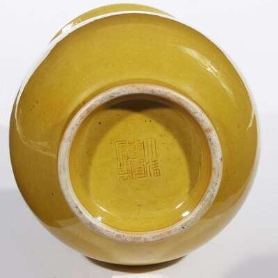A Chinese yellow-glazed biscuit porcelain vase Qing dynasty, Qianlong six-character incised seal mark, probably later