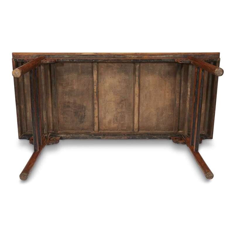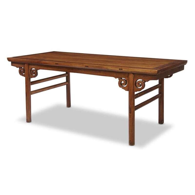 A Chinese Ming style carved elm wood calligraphy table