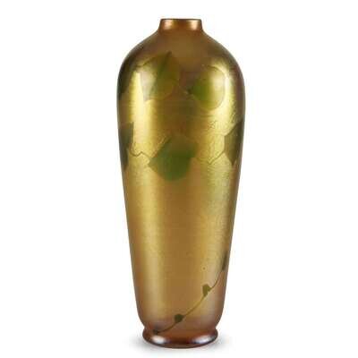 Louis Comfort Tiffany (American 1848-1933) Favrile glass vase with trailing heart and vine decoration, circa 1912