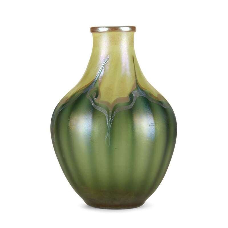 Louis Comfort Tiffany (American 1848-1933) Favrile glass vase with pulled feather decoration, circa 1910