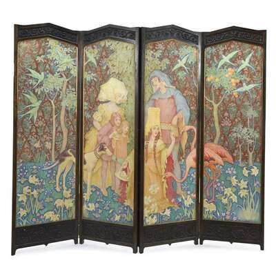 An Arts & Crafts style figural painted wood screen 20th century