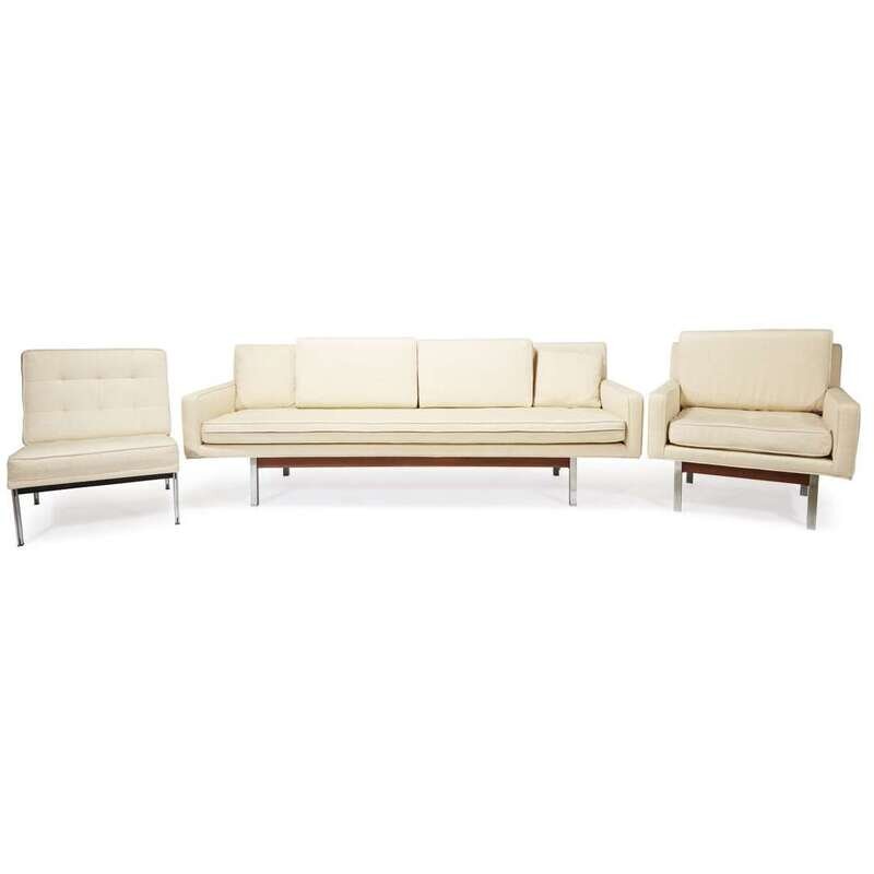 Comprising a sofa, armchair, and a Florence Knoll parallel bar chair. (3).