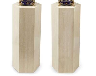Two modern polished limestone octagonal pedestals (2).