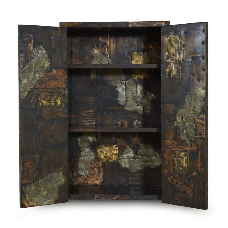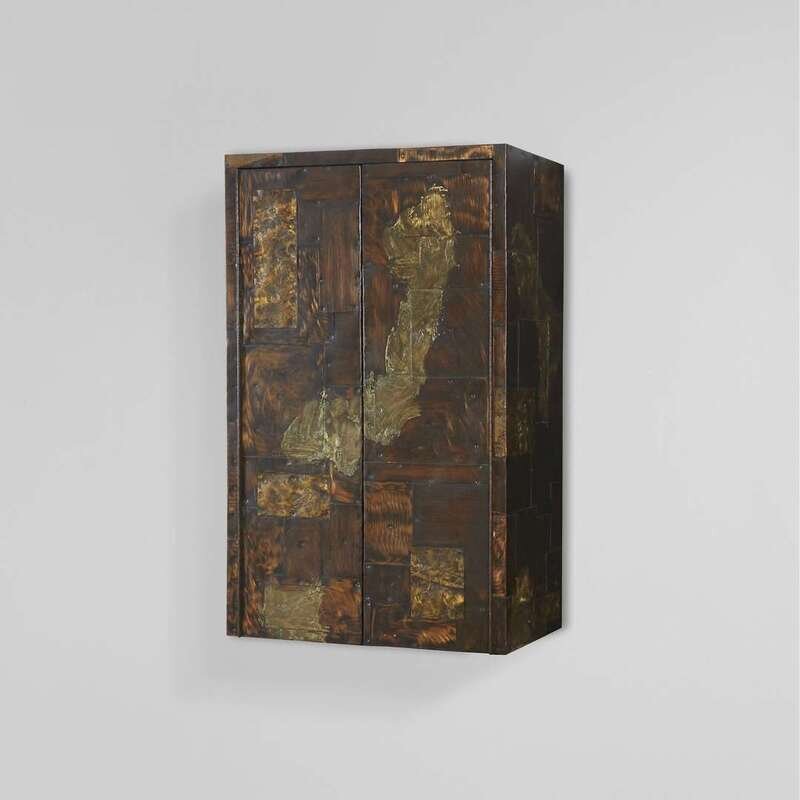 PAUL EVANS (AMERICAN, 1931-1987) "PATCHWORK" WALL-MOUNTED CABINET, NEW HOPE, PENNSYLVANIA,