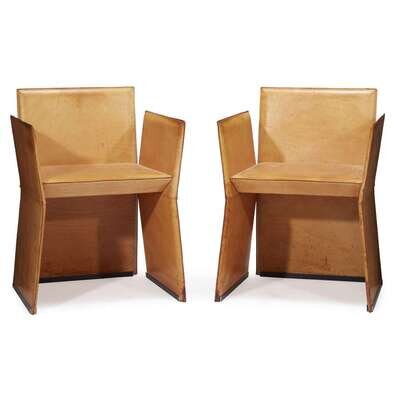 A pair of modern design leather armchairs probably Italian, mid-late 20th century