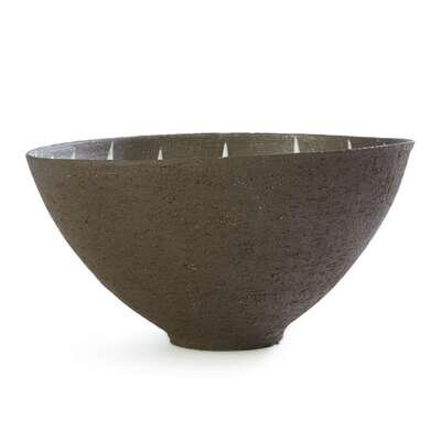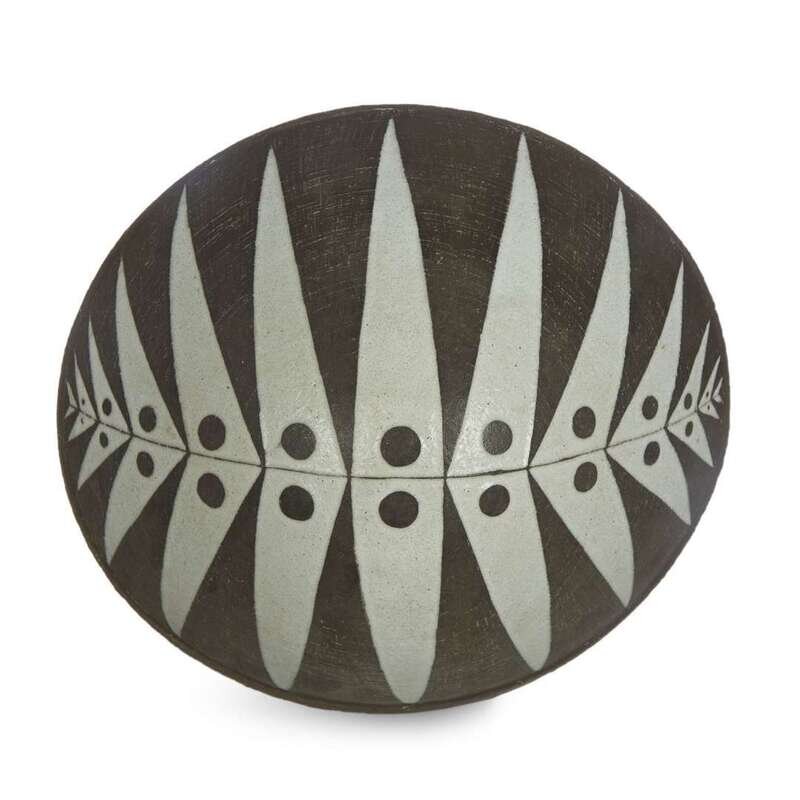 A Thomas Toft enamel-decorated brown stoneware bowl circa 1950s