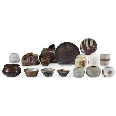Sixteen works included vases, bowls and lided jars. Primarily glazed stoneware Several signed: "RE CUCA"