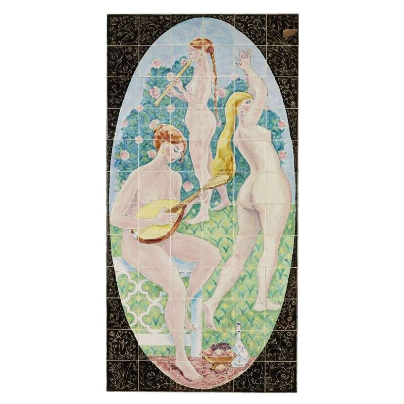 Francis McCarthy (American, 1923-2005) Tiled panel with nude figures, dated 1981