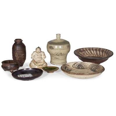 A collection of eight historical Japanese pottery wares 18th-20th century