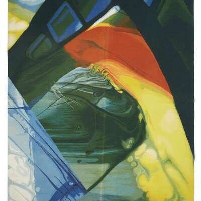 Signed in weave: "Madden" Numbered in weave to verso: "2/8" Applied fabric label to verso: "Tapisserie d'Aubusson carton original de Charles L. Madden".