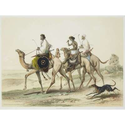 ACHILLES-CONSTANT-THEODORE-EMILE PRISSE D'AVENNES (FRENCH, 1807-1879) "ABABDEH RIDING DROMEDARIES"