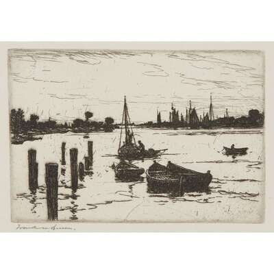 FRANK WESTON BENSON (AMERICAN, 1862-1951) "HARBOR LANDSCAPE"