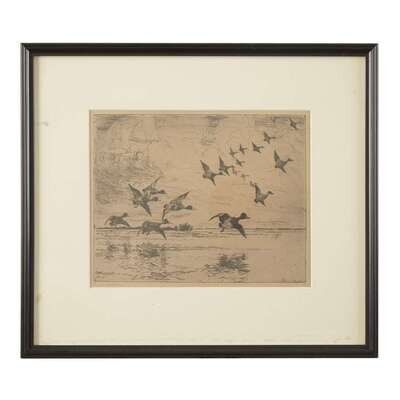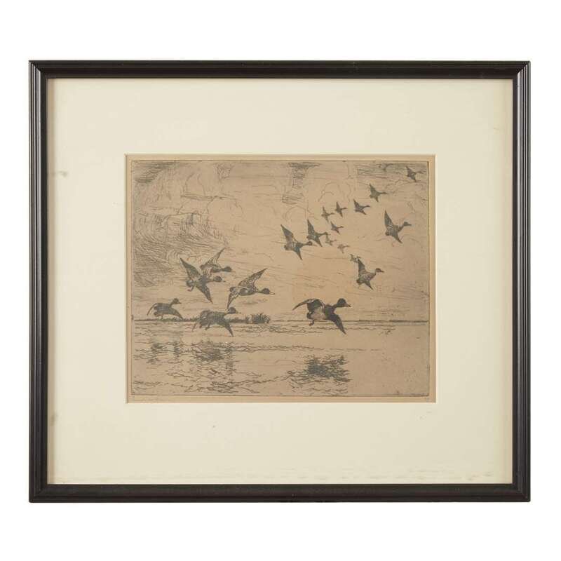 FRANK WESTON BENSON (AMERICAN, 1862–1951) "FLYING GEESE"