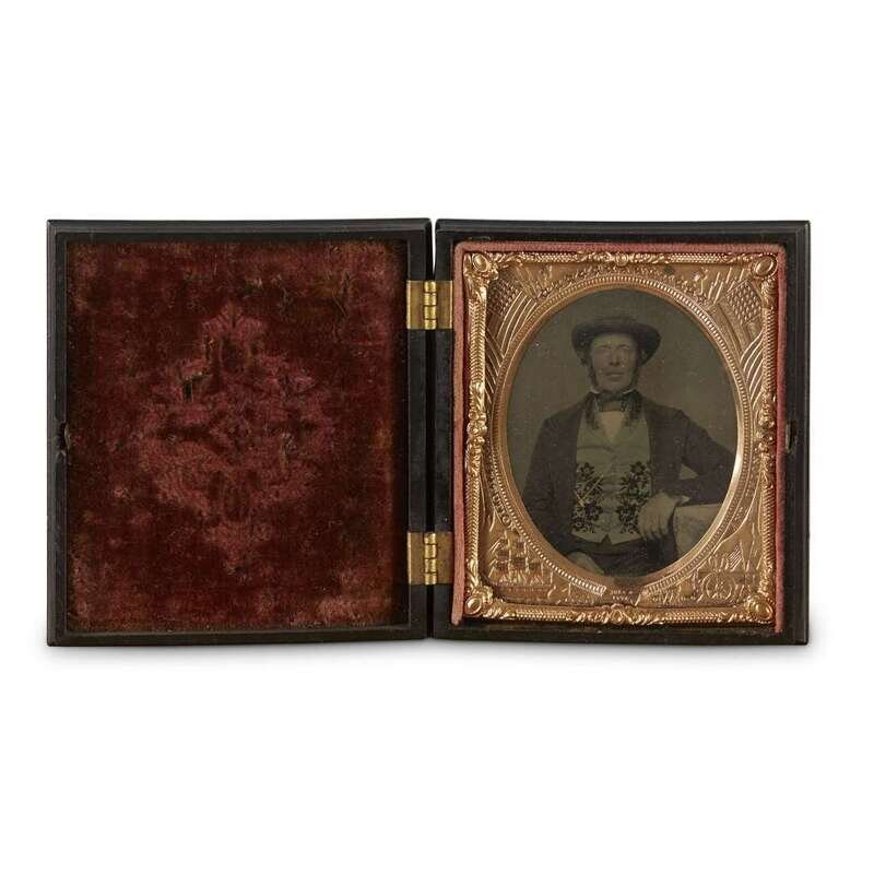 Ambrotypes, which are underexposed glass negatives on a dark background, were sold in cases to protect the fragile negatives.