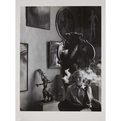 Arnold Newman is known for his "environmental" portraits in which he depicted his subject in their natural habitat, surrounded by their favorite objects—capturing their interior state as well as their appearance, an unconventional idea in the 1930s.