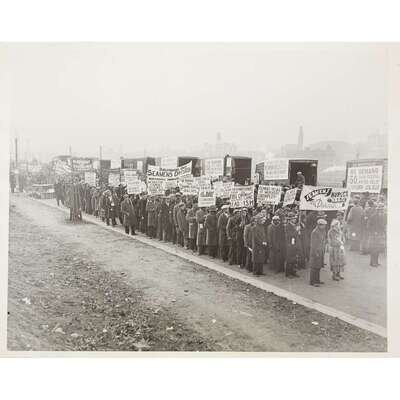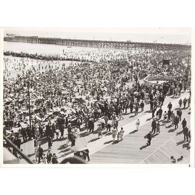 Various subjects, including the first day of summer at Coney Island, 1932; Funeral march in protest of the execution of Julius and Ethel Rosenberg, 1953; Atomic bomb test, 1962; Albert Einstein and other scientists, 1931; and Hunger March on Washington, 1932. Size and condition varies.