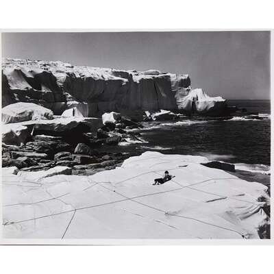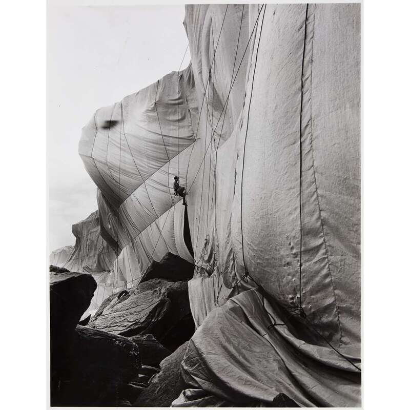 Shunk and Kender first shot Christo and Jeanne-Claude's wrapping of the Trocadéro in Paris (1964) then went on to photograph all of their subsequent site-specific projects. For this project, the artists worked with over 100 people for four weeks, wrapping one and a half miles of cliffs with one million square feet of fabric and 35 miles of rope.