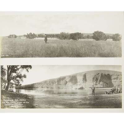Ca. 1923. Oblong 4to. Album of panoramic gelatin silver prints, corners bumped. Forty image sheets mounted to black paper album pages, with two images per sheet and descriptive text on each photo.