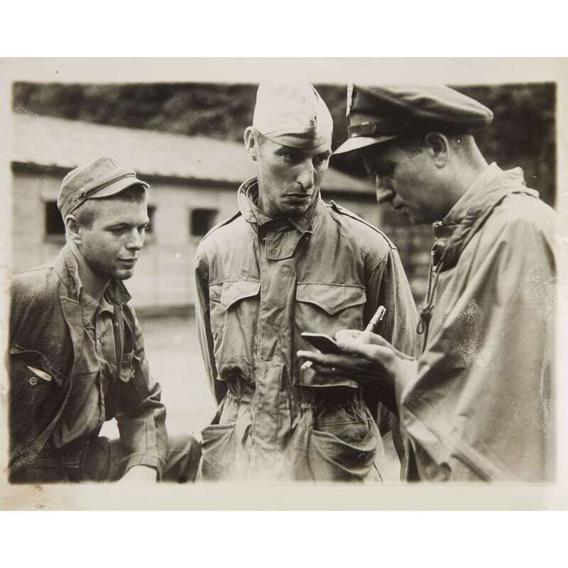 Ca. 1945-1946. 34 gelatin silver prints. Each photo with printed caption sheet. Condition varies.