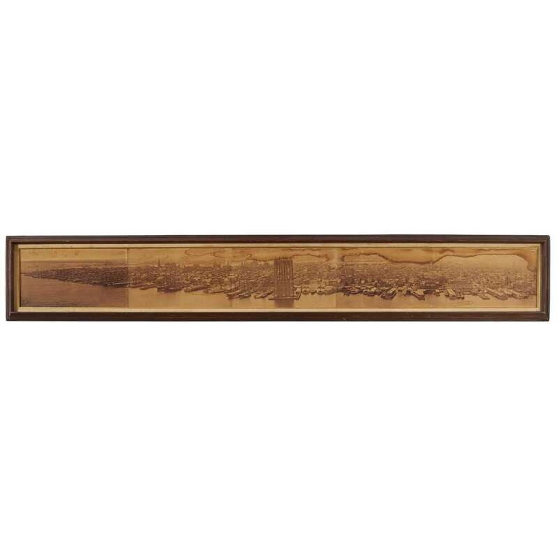Captured from the east tower of the still-under-construction Brooklyn Bridge in January 1876, Beal's composite photo provides a sweeping view of Lower Manhattan. Numerous landmarks can be seen including Trinity Church, the New York Tribune and Western Union buildings, at the time the city's tallest buildings. This rare photograph (only five other copies are known to exist) captures New York during its early transformation from a dense fabric of low-rise buildings to the modern metropolis we see today.