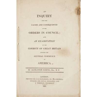 [Americana] Baring, Alexander, Esq., M.P. An Inquiry into the Causes and Consequences of the Orders in Council; and an Examination of the Conduct of Great Britain Towards the Neutral Commerce of America