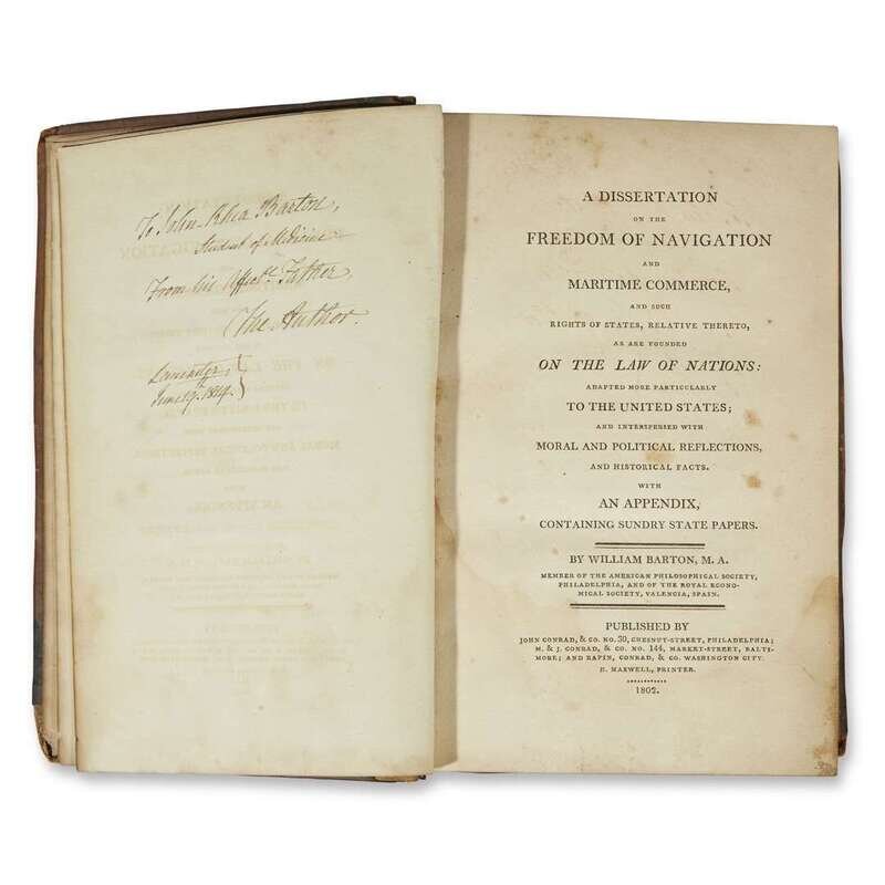 [Americana] Barton, William A Dissertation on the Freedom of Navigation and Maritime Commerce... Adapted more particularly to the United States...