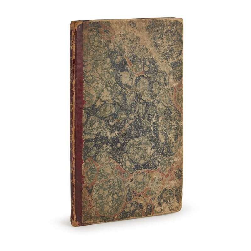 Charleston, (S.C.): printed by Archibald E. Miller; Published and Sold by James M. Elford, 1823. First edition. 8vo. (i)-xvi,[1],18-75, [1]pp., plus engraved frontispiece. Original quarter russia over marbled boards, joints, extremities, and spine ends rubbed; spine stamped in gilt. Illustrated with hand-colored engraved frontispiece. A few quires toned, scattered foxing. With Elford’s engraved trade label mounted to front paste-down. Old signature and annotations on front endpapers. OCLC 83280280, collating as above; America Imprints 12436, as above.