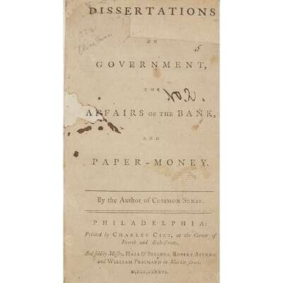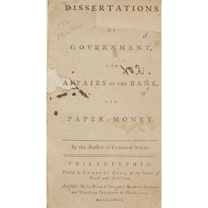 [Americana] (Paine, Thomas) Dissertations on Government, the Affairs of the Bank, and Paper-Money