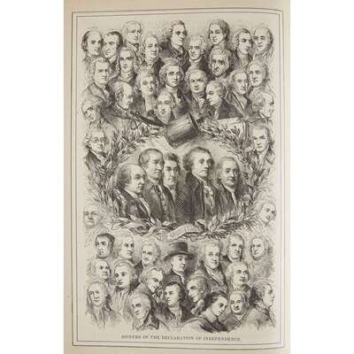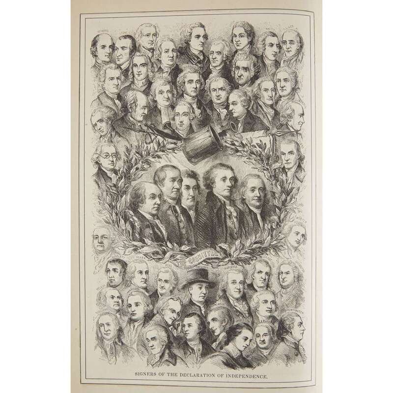 Philadelphia: Thomas, Cowperthwait & Co., 1852. 4to. Revised and edited by Robert T. Conrad. From the collections of Lucy Wharton Drexel and Boies Penrose, II and with their book-plates on the front paste-down and first free endpaper. Illustrated with an additional engraved title-page, one frontispiece, 99 steel and wood-engravd plates (including extra-illustrated plates), and two fold-out fascimiles of the draft of the Declaration of Independence. Publisher's green pebbled morrocco, lightly worn, edges and joints rubbed, spine browning; stamped in blind and in gilt; edges in gilt; dentelles in gilt; marbled endpapers.