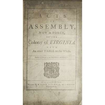 [Americana] The Acts of Assembly Now in Force in The Colony of Virginia