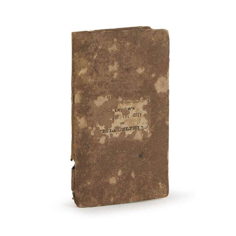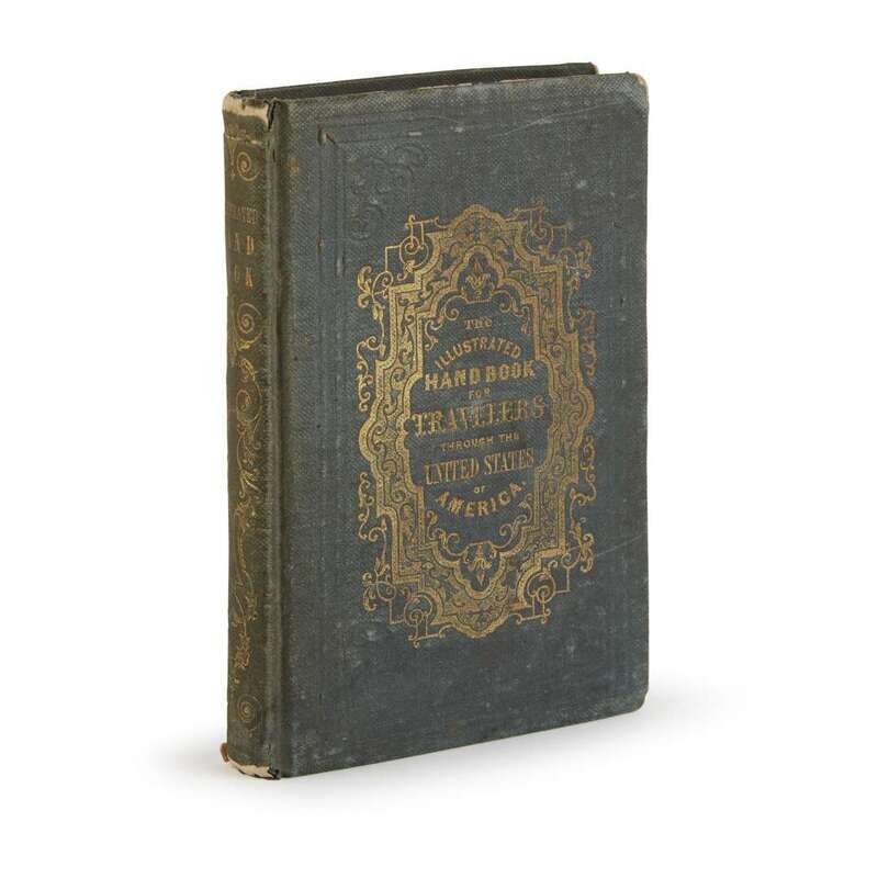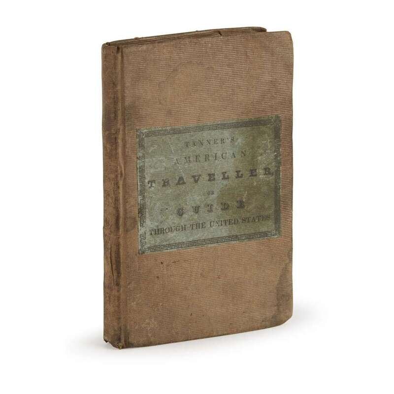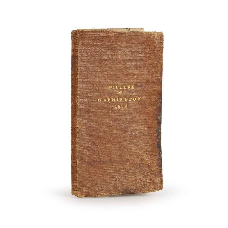 Including: 1. (Elliot, S.A.) Picture of Washington, 1835. 24mo. (1)-8pp. Original sheep, rubbed and worn; stamped in gilt. Illustrated with engraved folding map, “Plan of the City of Washington, Seat of Government of the United States.” One panel mounted to inside of the back cover, other panels detached & separated along folds. 2. (Tanner, H.S.) Tanner’s Map of Philadelphia Philadelphia, 1836. Illustrated with an engraved partly-colored and folding map, toned, with a few small separations. In original cloth casing, worn, losses to bottom of spine. 3. Tanner, H.S. The American Traveller: or Guide through the United States Philadelphia, 1838. “Third Edition.” 12mo. (i)-iv, (1)-144pp., plus four engraved leaves of views. Original tan cloth, moderatley worn, minor dampstaining; green paper cover label. Folding map at rear torn away; views heavily toned, maps lightly toned, scattered toning and spotting to text 4. The Illustrated Hand-Book, A New Guide for Travelers through the United States of America. New York: Sherman & Smith, 1847. 12mo. 233pp. Publisher's green cloth, corners and spine ends rubbed, other light wear; stamped in gilt. Illustrated with folding engraved map, outlined in hand-color, lightly worn, and wood engraved vignettes in text. Scattered dampstaining to text.
