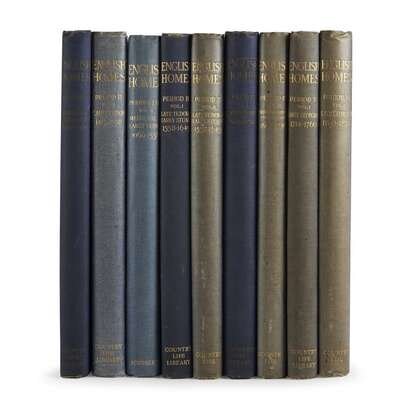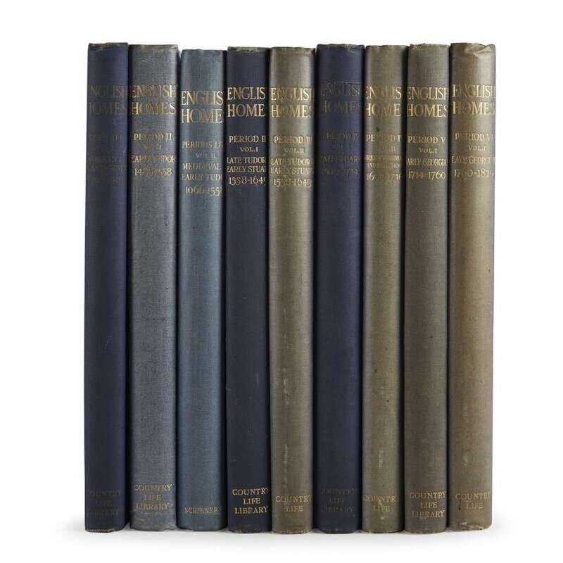 London: Country Life, 1920-1937. In nine volumes. First edition. Folio. Profusely illustrated with black and white photographic reproductions. Each in publisher's quarter blue cloth over blue linen, small abrasion to front cover of Period II - Vol. I, blue linen starting to separate on Period III - Vol. I, some spines lightly sunned, other small wear; each lettered in gilt, five volumes ruled in gilt; all edges gilt on eight volumes, one volume (Periods I & II - Vol. II) with top edge gilt and other edges trimmed; each with marbled endpapers; all lacking dust-jackets.