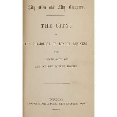 [Business & Industry] (Evans, David Morier) City Men and City Manners. The City; or, the Physiology of London Business; with Sketches on 'Change, and at the Coffee Houses