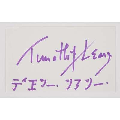 Signed in purple ink on card. Also signed by Leary in Japanese under signature. 3 x 5 in. (8 x 13cm).