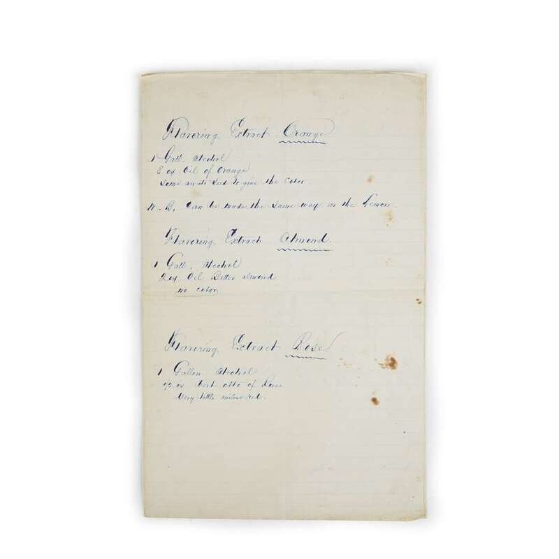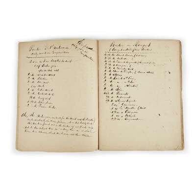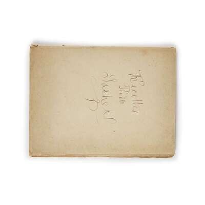 No place, no date (ca. late 19th century). 4to (12 x 9 in.). 48 pp. in total, with recipes in French on 14 pp. Limp self wrappers. Together with 5 pp. of English recipes in blue ink on lined paper, 12 ¼ x 7 ¾ in.