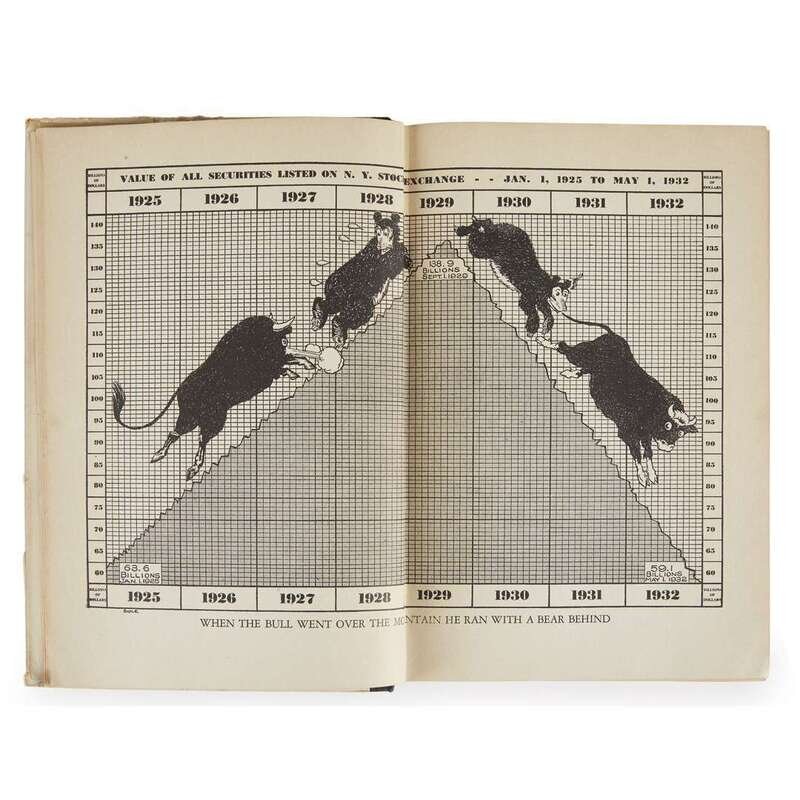 (New York, 1932). First edition, #470 of 2,000 copies signed by Plummer. 8vo. From the collection of Frank A. Vanderlip and with his book-plate on front paste-down. Illustrated with numerous charts and cartoons. Original quarter black cloth over pictorial orange and white boards, top of spine worn and starting, covers soiled, corners bumped.