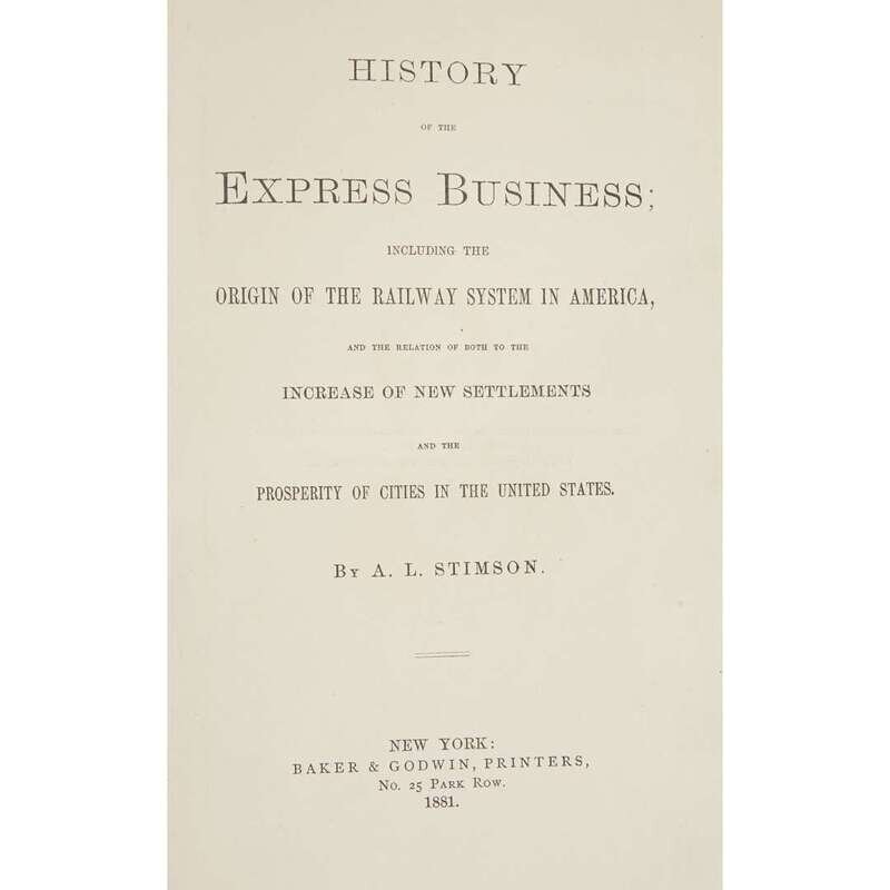 [Finance] Stimson, A.L. History of the Express Business; Including the Origin of the Railway System in America, and the Relation of Both to the Increase of New Settlements and the Prosperity of Cities in the United States