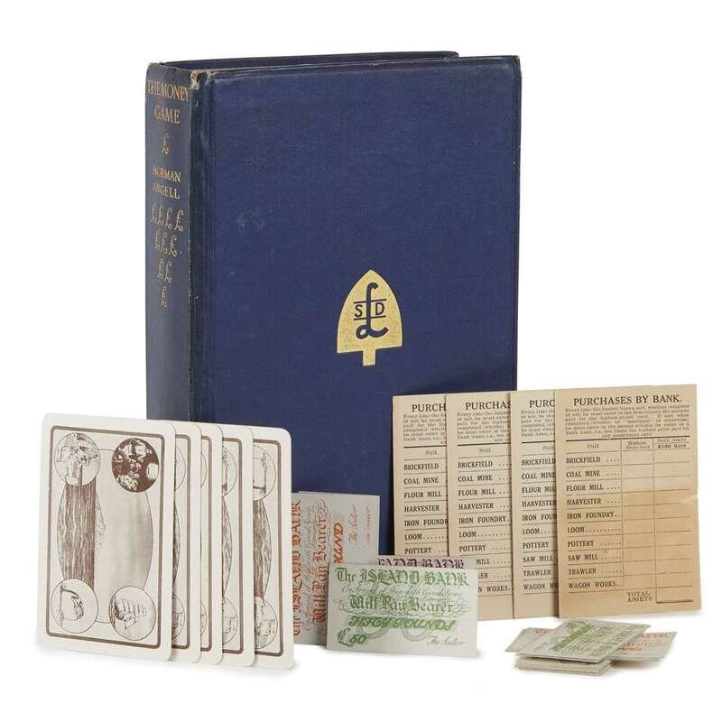 London & Toronto: J.M. Dent & Sons Ltd, 1928. First edition, second Printing. 8vo. Publisher's blue cloth; stamped in gilt; with 147 of 150 original games pieces in pockets at rear (lacking three cards); ownership signature on first free endpaper.