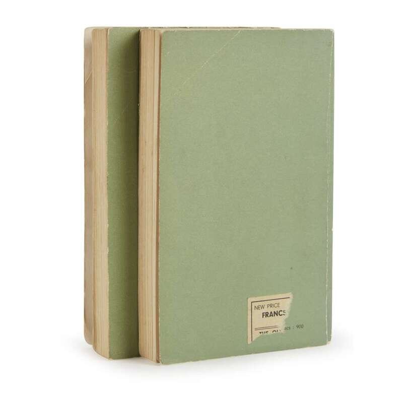 Paris: The Olympia Press, 1955. In two volumes. First edition. 12mo. Presumed earliest issue stiff green printed wrappers with printed price of "Francs : 900" on rear wrapper of each volume and with a partial "New Price" sticker over printed price on second volume.