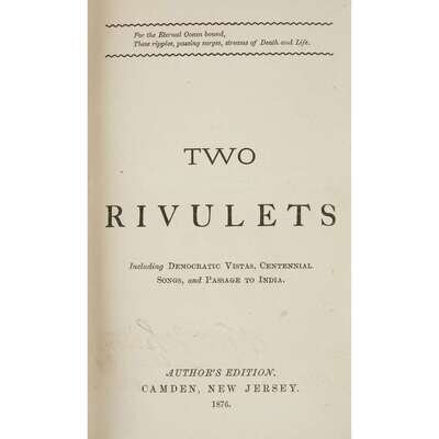 [Literature] (Whitman, Walt) Two Rivulets; Including Democratic Vistas, Centennial Songs, and Passage to India