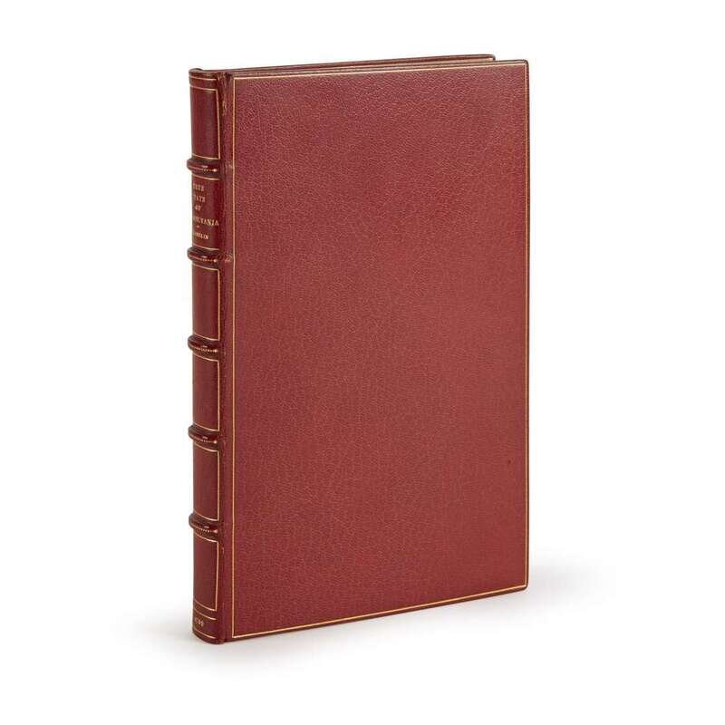 Philadelphia: W. Dunlap, 1759. 8vo. [2], (i)-v [1], 5-173 [1], (1)-34pp., plus ads leaf; errata on p.173. Early 20th century full crushed crimson niger morocco, minor wear to joints; stamped in gilt. Scattered minor foxing; second and third leaves of the Dedication bound out of order (i.e. following the first text leaf); Dedication leaves on thicker paper (likely supplied from another copy); book-plate of Jay Snider on front paste-down. Provenance: Snider Sale lot 98. Ford Franklin 261.