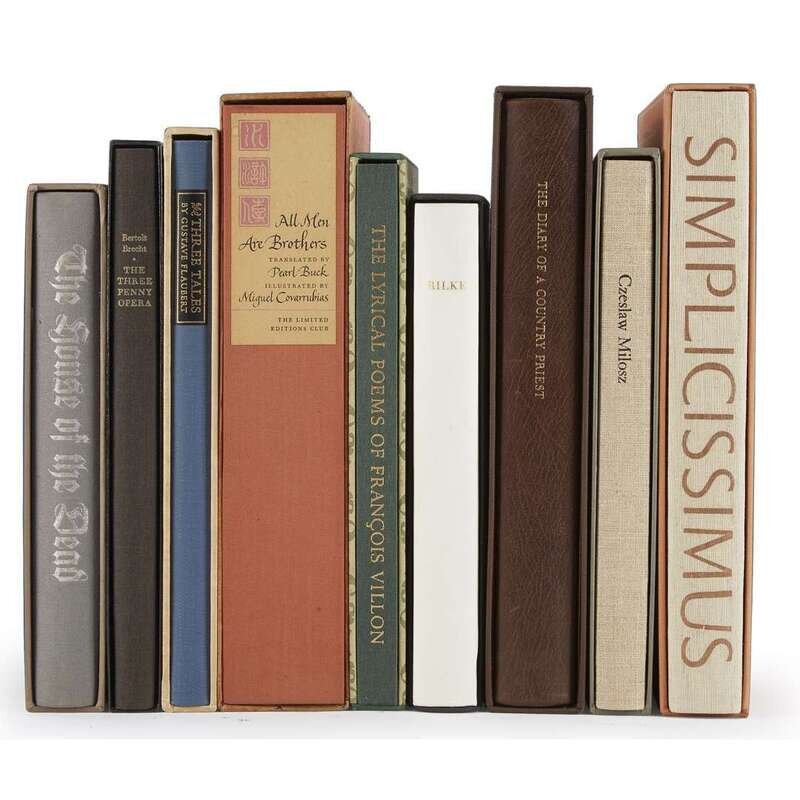 1. Chuan, Shui Hu. All Men Are Brothers (2 vols). Illustrated by Miguel Covarrubias. 1948. 2. Villon, François. The Lyrical Poems of François Villon. 1972. Illustrated by Stephen Harvard. 3. Flaubert, Gustave. Three Tales. 1978. Illustrated by May Neama. 4. Christoffel, Johann Jakob. The Adventures of Simplicious Simplicissimus. 1981. Illustrated by Fritz Eichenberg. 5. Brecht, Bertoldt. The Threepenny Opera. 1982. Illustrated by Jack Levine. 6. Dostoevsky, Fyodor. The House of the Dead. 1982. Illustrated by Fritz Eichenberg. 7. Milosz, Czeslaw. The Captive Mind. 1983. Illustrated by Janusz Kapusta. 8. Bernanos, George. The Diary of a Country Priest. 1986. Illustrated by Fritz Eichenberg. 9. Rilke, Rainer Maria. The Notebooks of Malte Laurids Brigge. 1987.