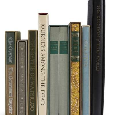 1. Arnold, Edwin. The Light of Asia. 1976. Illustrated by Ayres Houghtelling. 2. Carpentier, Alejo. Kingdom of This World. 1987. Illustrated by Roberto Juarez. 3. Colette. Break of Day. 1983. Illustrated by Francois Gilot. 4. Hugo, Victor. The Battle of Waterloo. 1977. Introduction by Drew Middleton. 5. Ionesco, Eugene. Journeys Among the Dead. 1987. Illustrated by Ionesco. 6. Rainer Maria Rilke. Selected Poems of Rainer Maria Rilke. 1981. Illustrated by Robert Kipniss. 7. Gogol, Nikolai. The Overcoat. 1976. Illustrated by Saul Field. 8. Dostoevsky, Fyodor. A Raw Youth. 1974. Illustrated by Fritz Eichenberg. A beautiful group, all in fine or near fine condition.