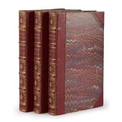 London: Richard Bentley, 1841. In three volumes. First edition. 8vo. vi, (2), 400pp.; (2), 406pp.; (2), 404pp. Illustrated with an engraved frontispiece in each volume and two plates in the third volume. Later 19th century three-quarter red morocco over marbled boards, corners and edges lighty rubbed on each volume; raised bands lightly rubbed on the second and third volumes; stamped in blind and in gilt; top edges gilt, other edges trimmed; marbled endpapers. Rear hinges starting in the first and third volumes; plate of Paracelsus in the third volume loose; title-pages of the first and third volumes laid down on later paper; binders ticket on front paste-down of each volume; foxing throughout each volume; scattered chipping and creasing in all volumes.