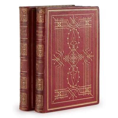 London: National Illustrated Library, 1852. In two volumes. Second edition. Illustrated with a frontispiece in each volume and numerous in-text illustrations. Publisher's full red morocco, small soiling on font cover of the second volume; decoratively stamped in gilt; all edges gilt; dentelles in gilt; likely the publisher's presentation binding. With the bookplate of Norman Ritchie on the front paste-down of each volume; scattered foxing in the first volume.